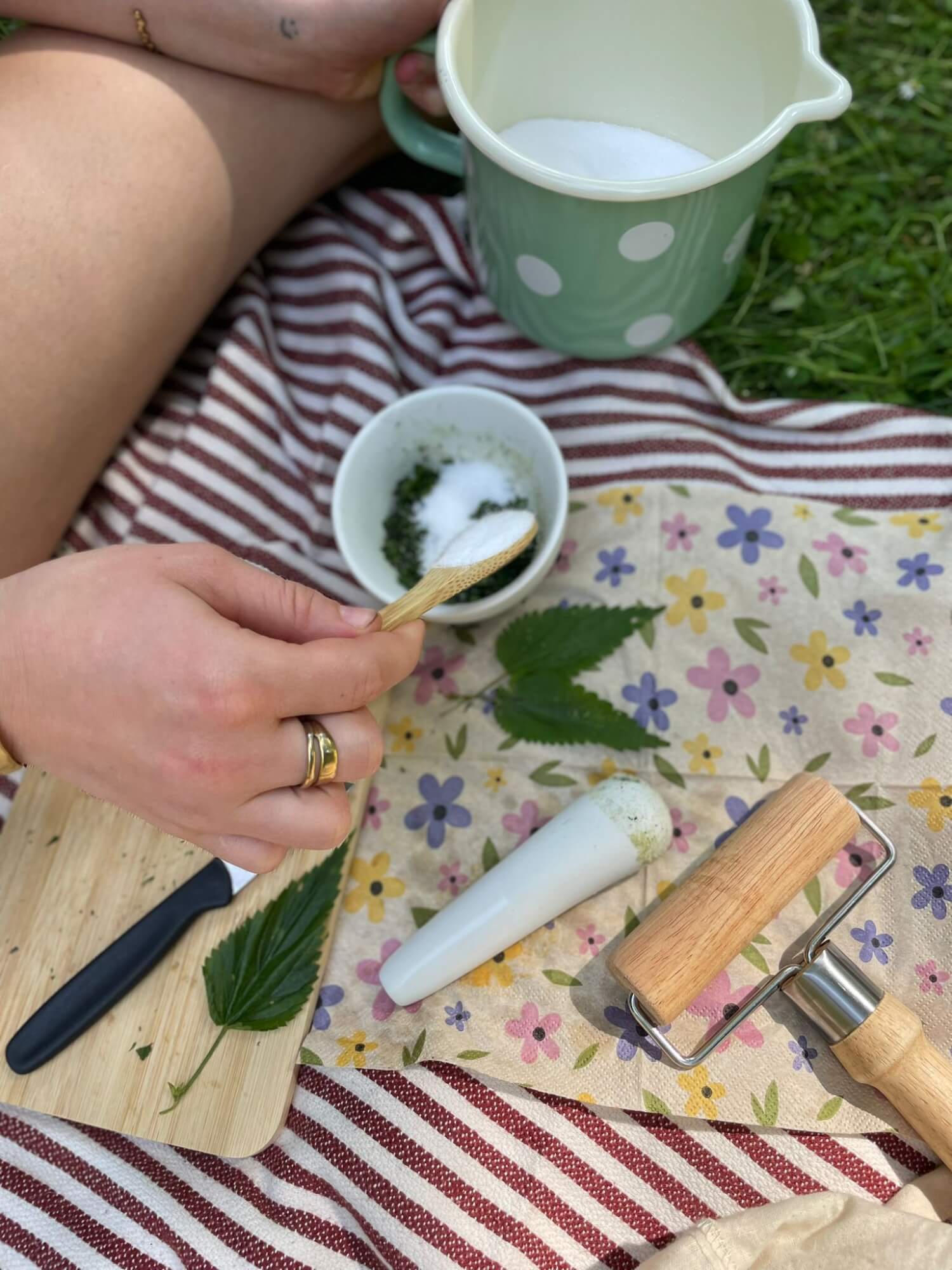 Nachdem du gelernt hast, wie du die Brennnessel pflücken kannst, ohne dich zu brennen, stellen wir ein Brennnessel-Salz her, das du im Anschluss mit nach Hause nehmen darfst.