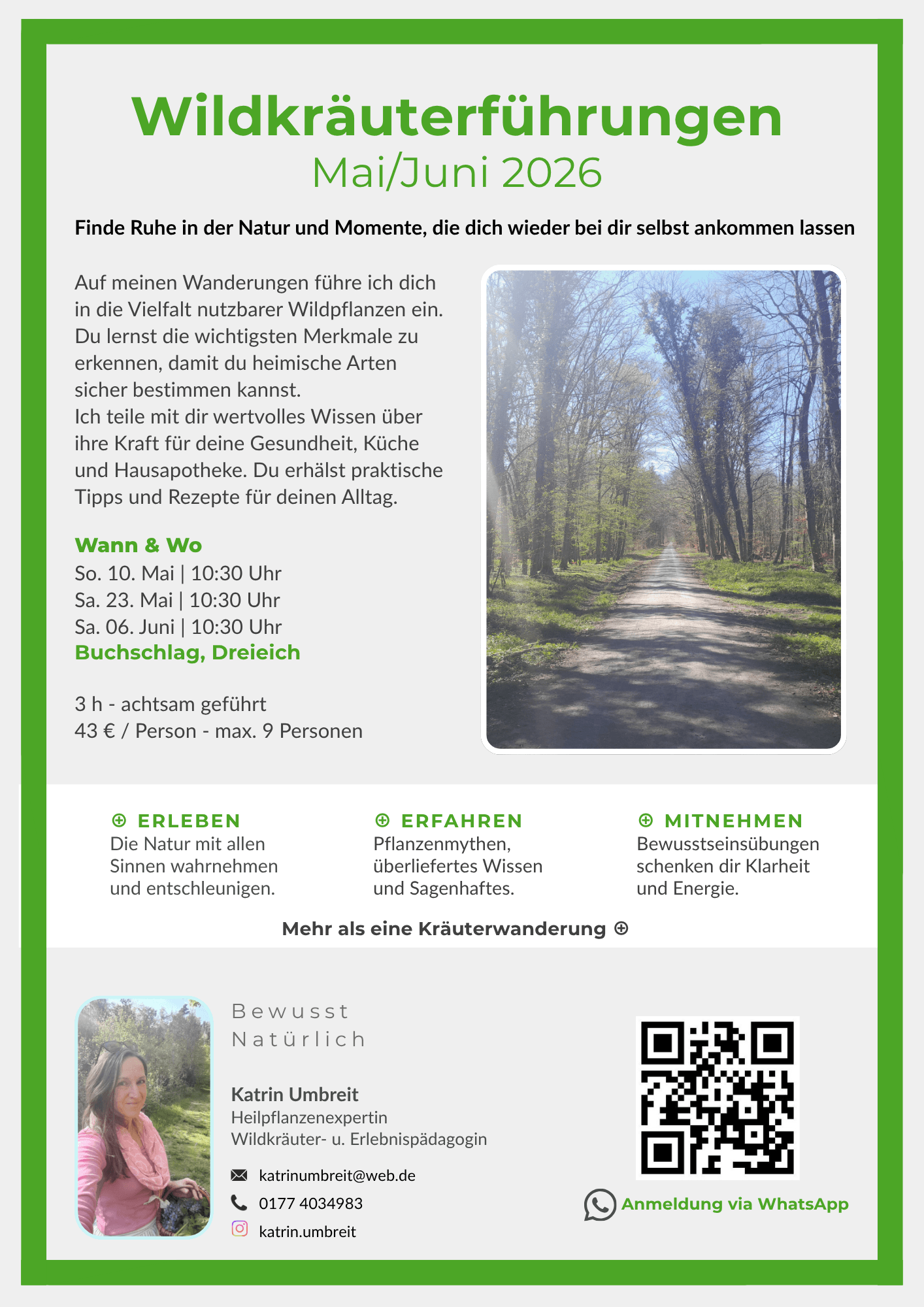 Auf meinen Wanderungen führe ich dich in die Vielfalt nutzbarer Wildpflanzen ein. Du lernst die wichtigsten Merkmale zu erkennen, damit du heimische Arten sicher bestimmen kannst.